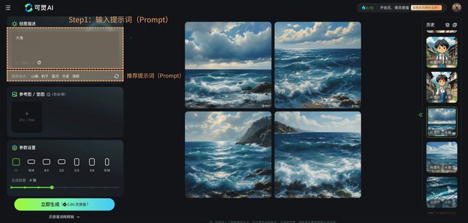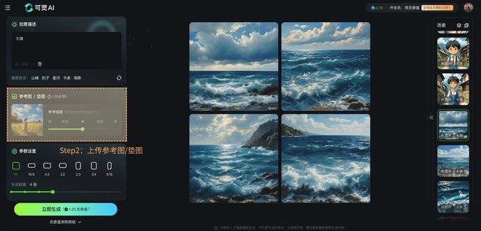 Step1: Input prompt | Step2: Upload reference/base image | Step3: Select other parameters | Step4: Generate image with one click |