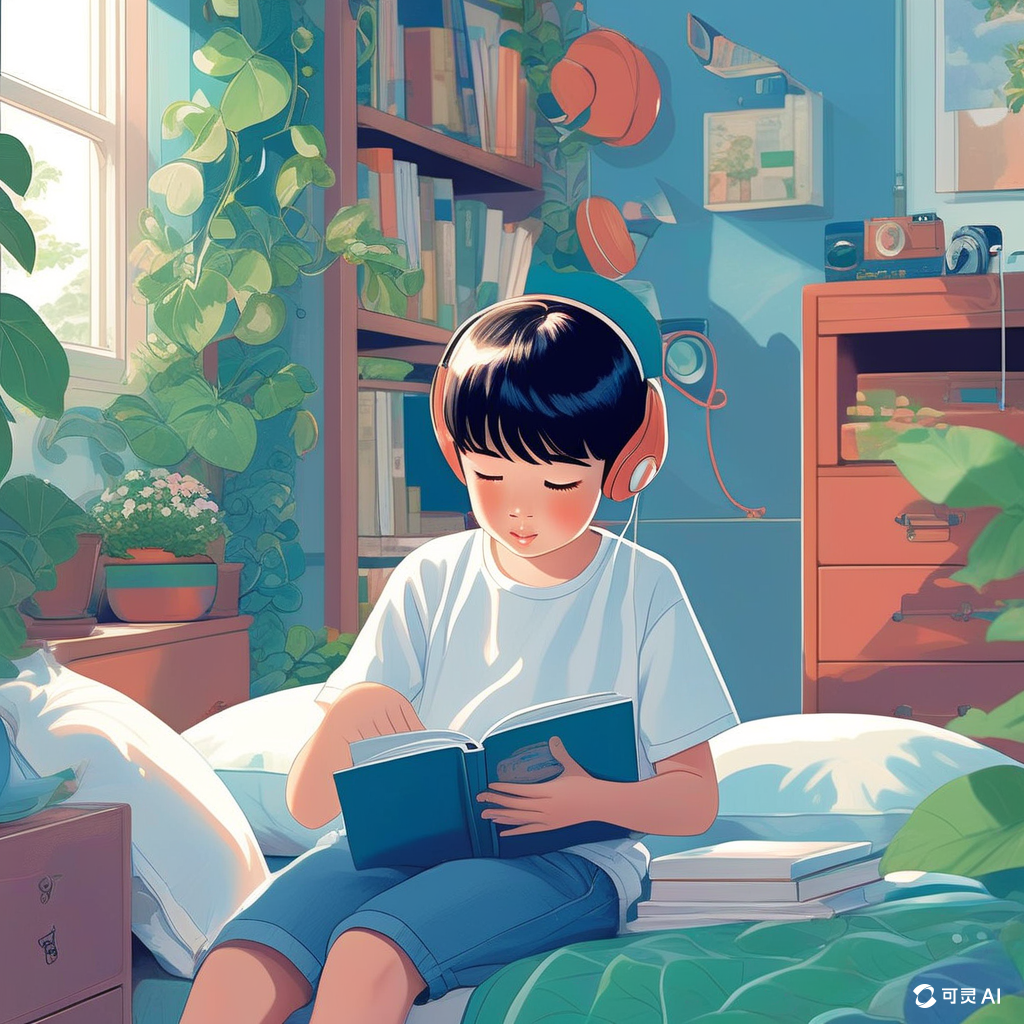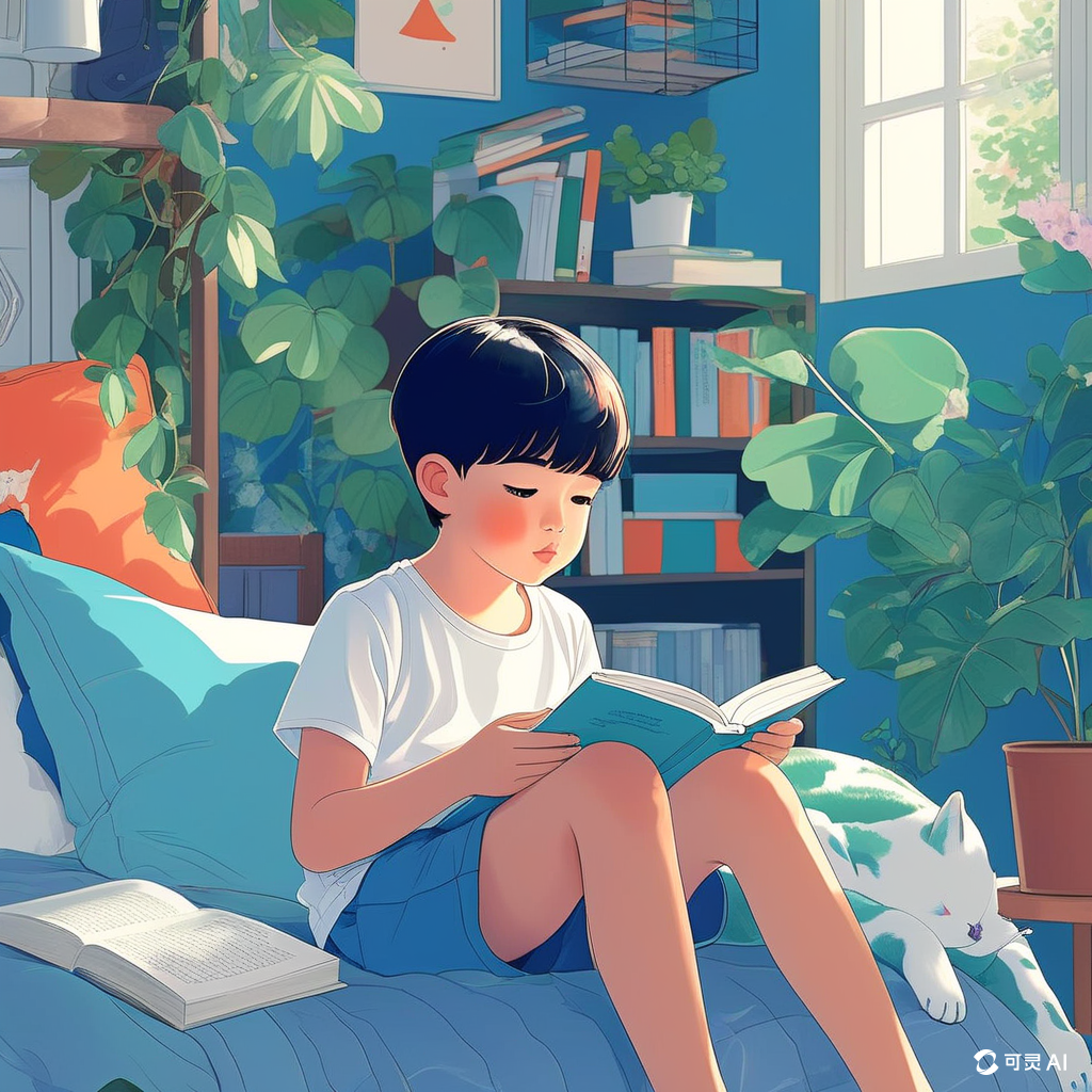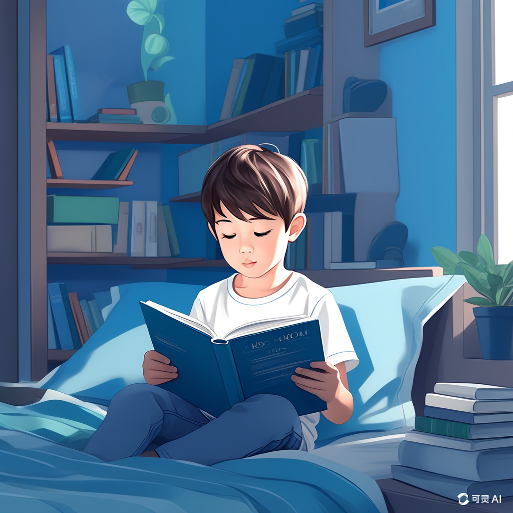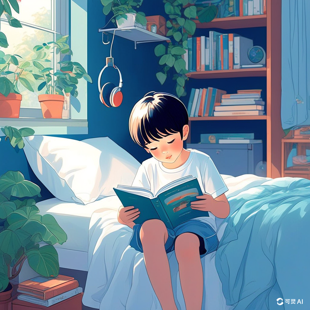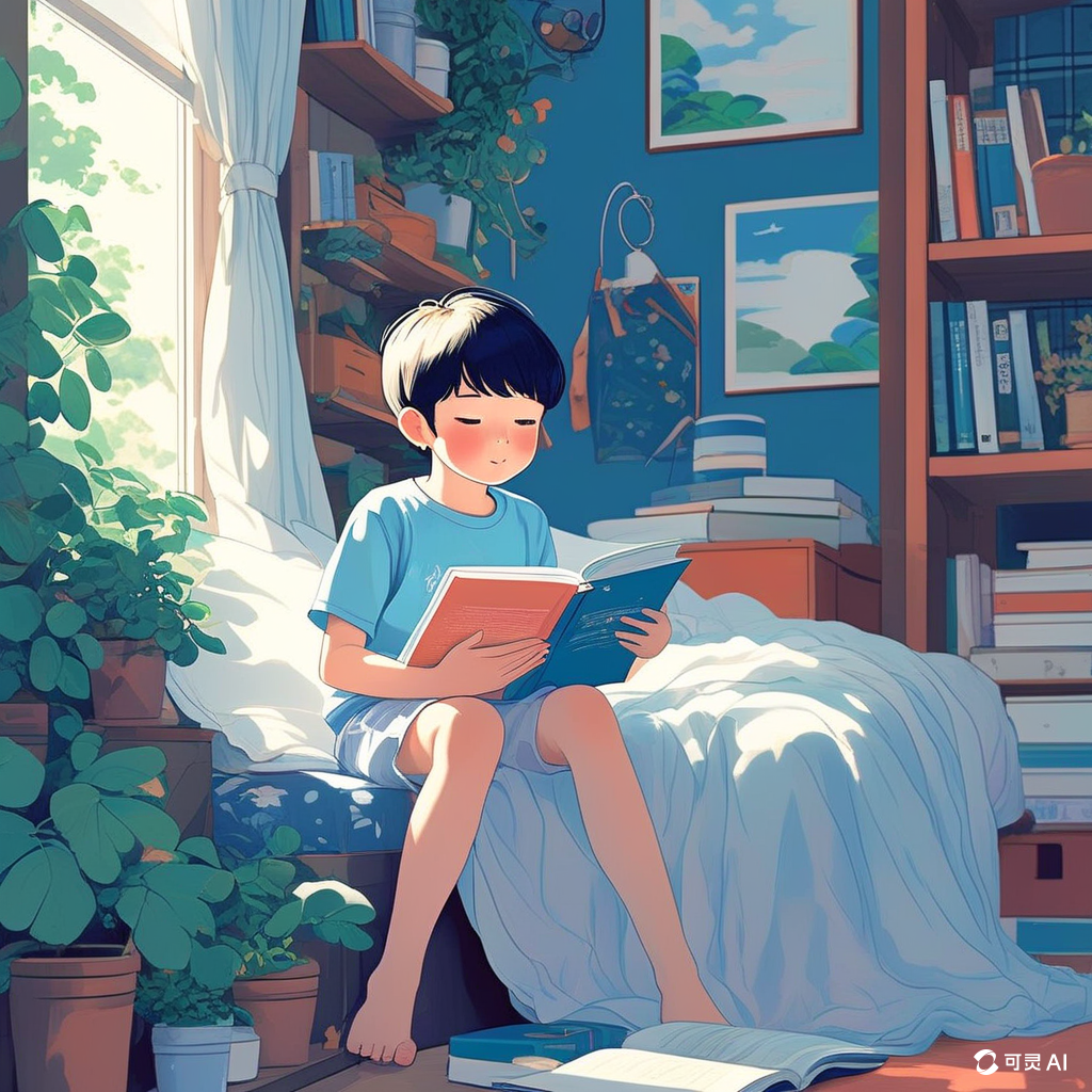 prompt:A boy is reading a book in the bedroom (reference intensity: weak) | ||||