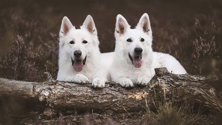 | The grass sways in the wind, while two dogs look off in different directions | ![]() ![]() | ||