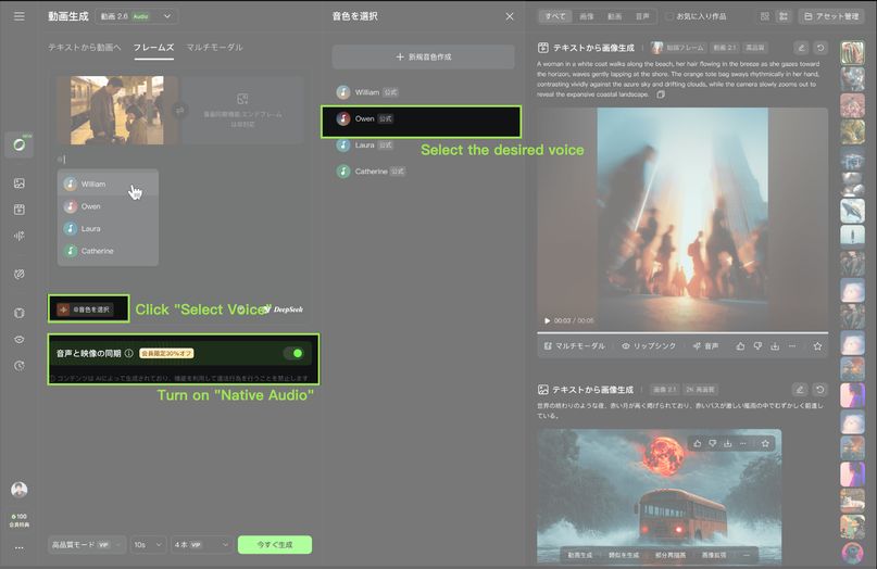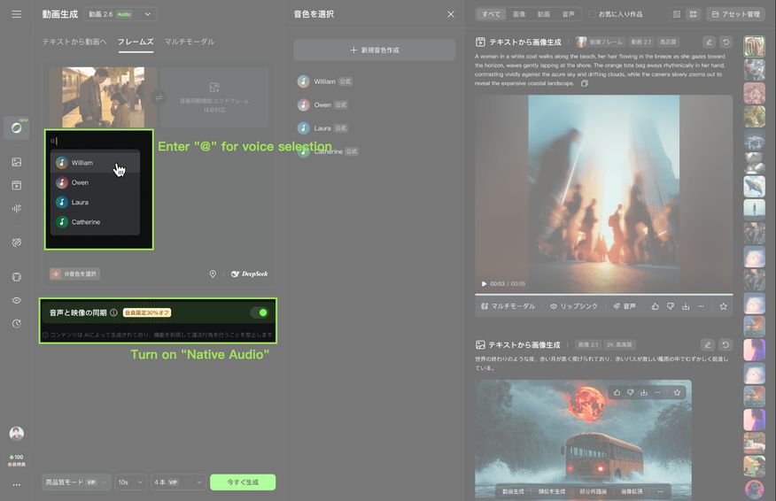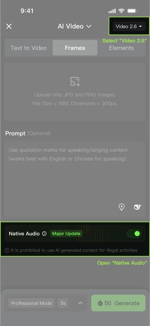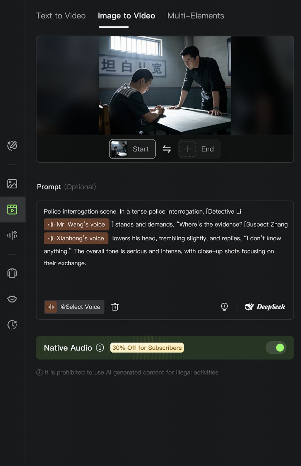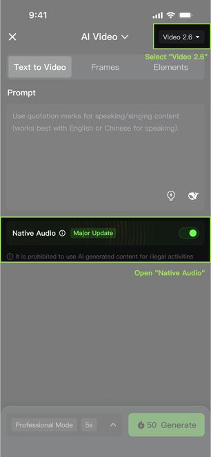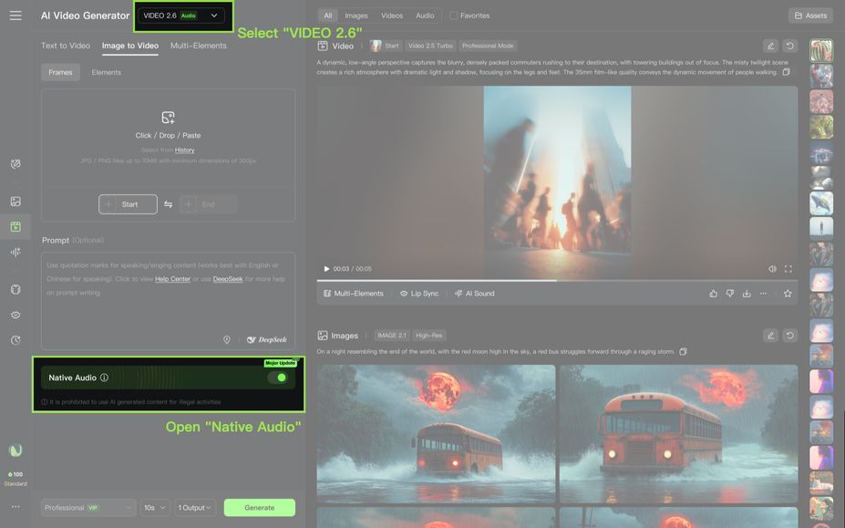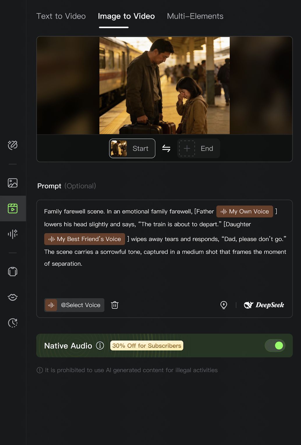 - Native Audio Toggle: When enabled, the video will generate with synchronized audio; when disabled, it generates video content without audio.
