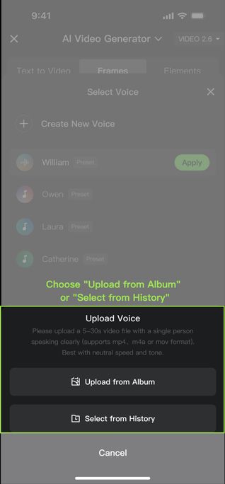 The Voice Control feature in VIDEO 2.6 is now available on both Web and App platforms. It is currently supported in Image-to-Audio & Visual (Image → Audio/Video); Text-to-Audio & Visual is not available yet. Below is a guide on how to create a custom voice and use Voice Control effectively.