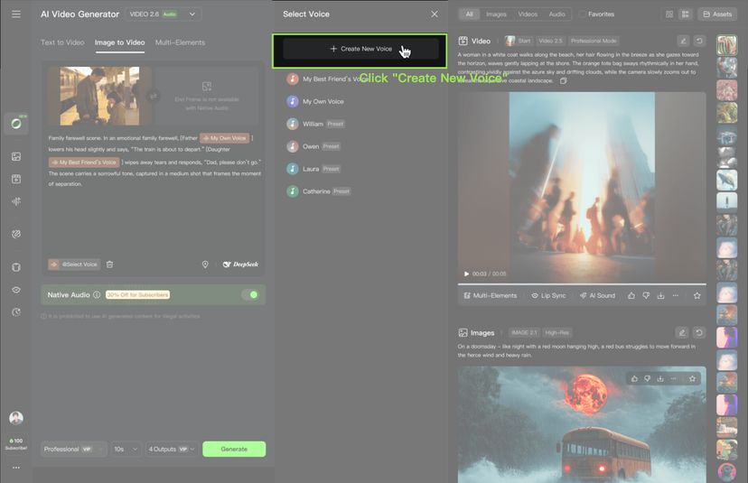 - Full control over sound: Choose who speaks, what they say, and the emotion behind it. Generate ambient and special effects sounds freely, adjusting the pace and atmosphere to fit various creative needs.